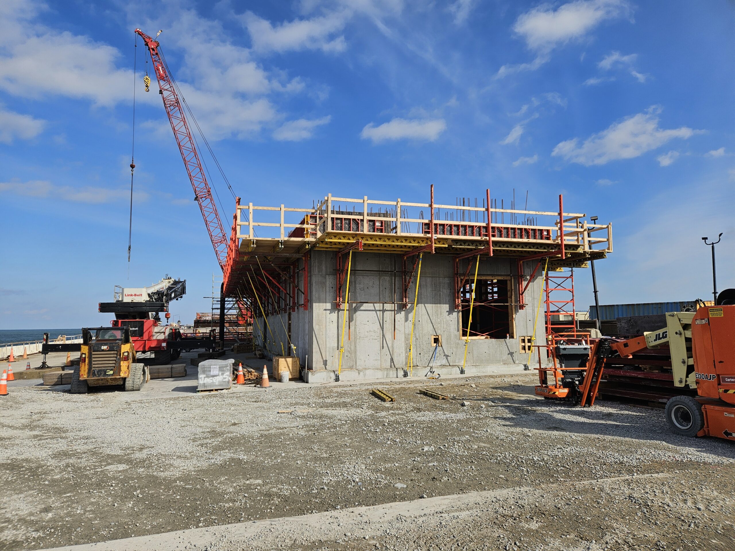 Concrete work continues to drive progress across the project. The walls of the ventilation building on Two Island are now visible to motorists crossing the facility.