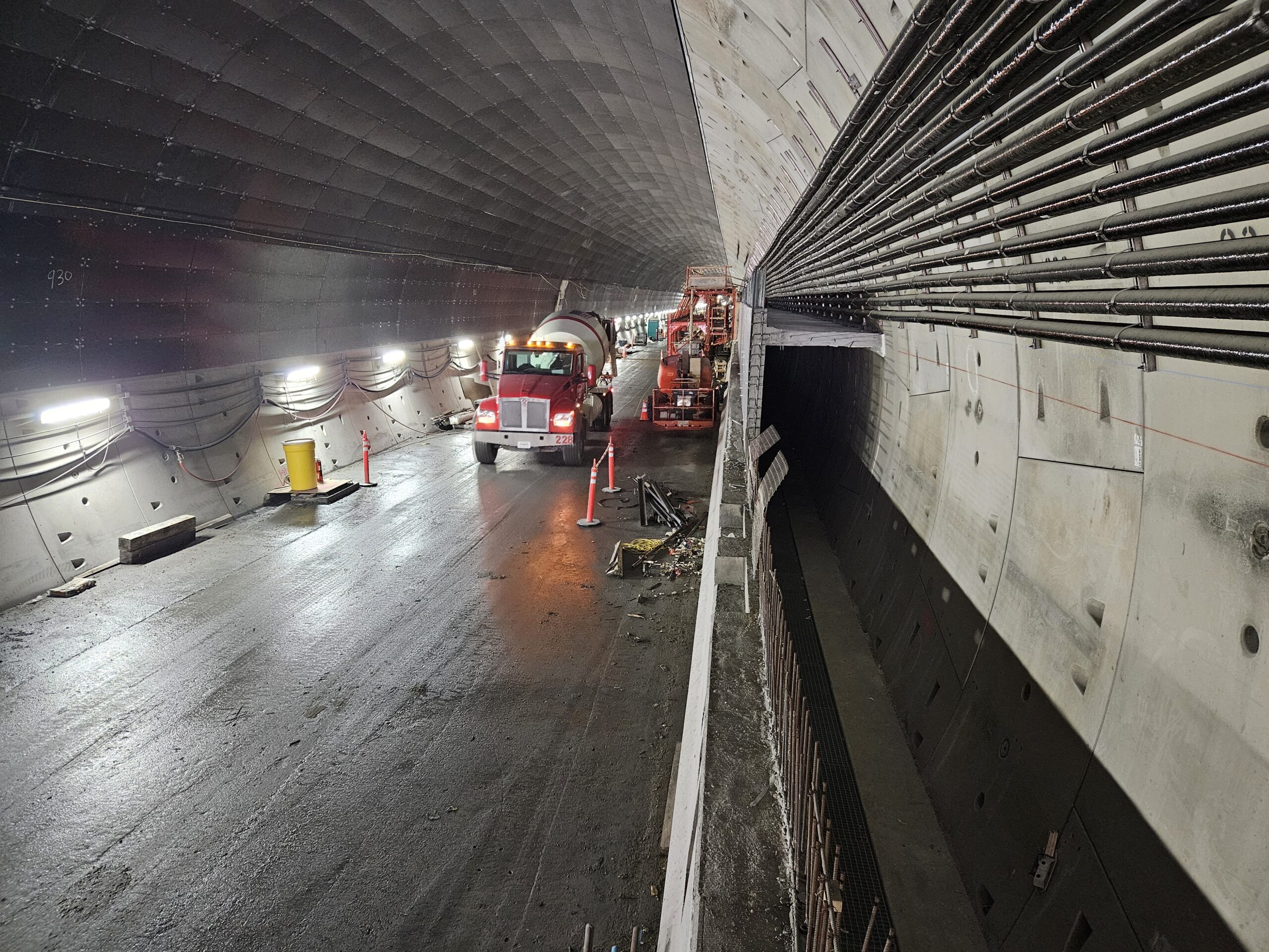 Additionally, the tunnel’s low point pump room, located mid-tunnel, has been enclosed with the placement of the new structural concrete roadway above it.